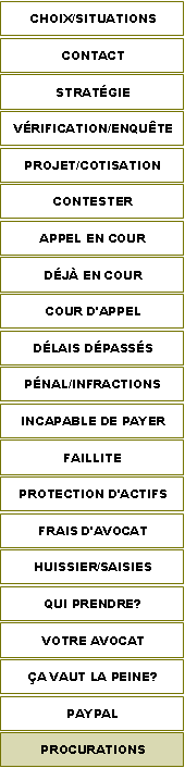 En tout temps , pour avoir accès à vos dossiers auprès des autorités fiscales, nous devons avoir une procuration valide nous permettant d’obtenir ces renseignements confidentiels. À cette fin, vous trouverez ici une procuration à remplir et nous faire parvenir signée. Il s’agit de l’étape la plus importante afin d’entreprendre votre défense.